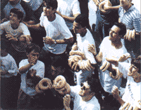 balcones, se lanzan roscos en su honor, que son cogidos al vuelo por